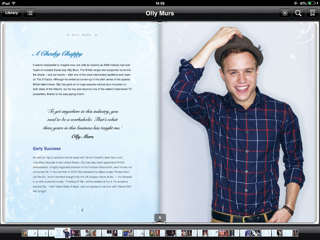 We’ve just launched our new Full-colour illustrated ebook on the iBook store and soon on Kobo: part of a brilliant new digital series for iPad, iPhones and the desktop OSX Mavericks OS. Everyone’s best loved cheeky chappy, Olly Murs was the X Factor runner up in 2009. With three studio albums under his belt as well as countless top ten hits Olly is also popular on the other side of the Atlantic. Cute pictures and absorbing text tell the inspirational story of Olly Murs. Packed with amazing photos.